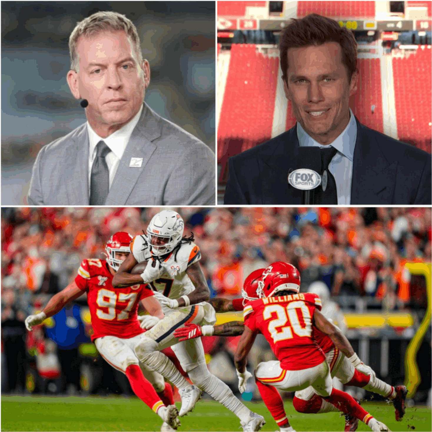 After Denver’s gritty 20–13 road victory over the Kansas City Chiefs, the NFL world expected the conversation to revolve around playoff implications, defensive stands, or the late-game composure of a young quarterback. Instead, the most electric moment of the night unfolded far from the field — inside the broadcast booth, where a sharp exchange between TROY AIKMAN and TOM BRADY reframed how the win would be remembered.