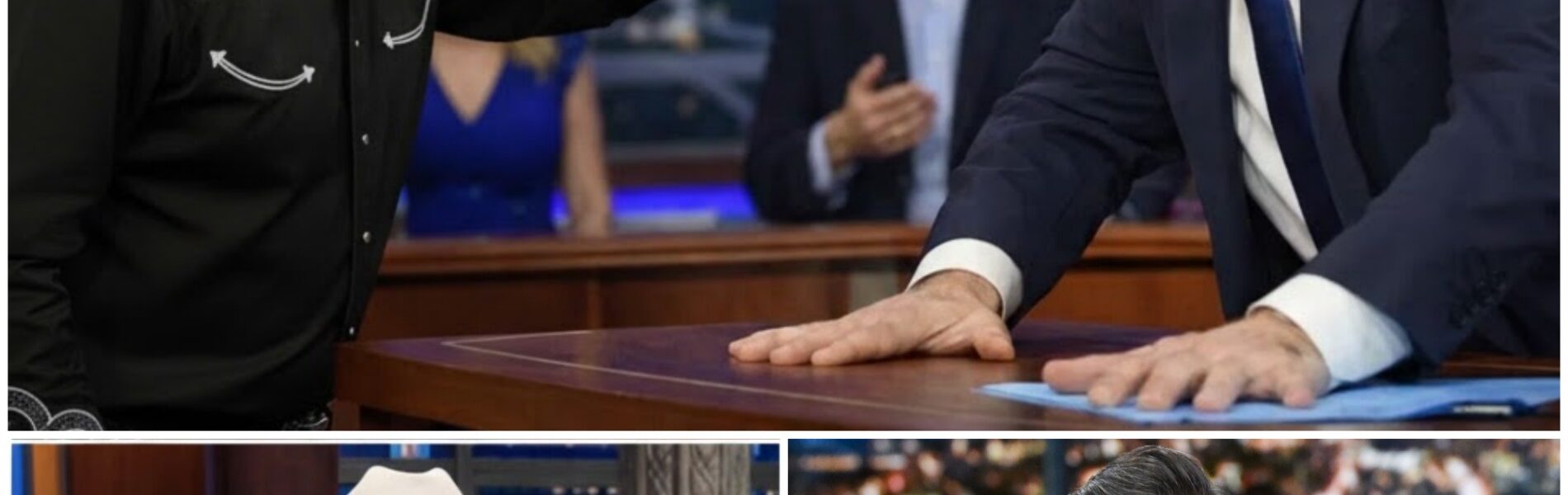 The boiling point came when Colbert, in a rare moment of frustration, slammed his hand on the desk and shouted, “SOMEONE TURN HIS MICROPHONE OFF IMMEDIATELY!” The studio, once filled with the sounds of laughter and playful banter, suddenly fell into an eerie silence. The shift in the mood was palpable, and all eyes turned to Jackson, whose calmness in the face of Colbert’s outburst stood in stark contrast to the tension in the air.
