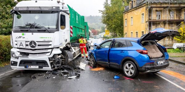 Frontal-Zusammenstoß mit Müllfahrzeug: Stundenlange Bergungsarbeiten