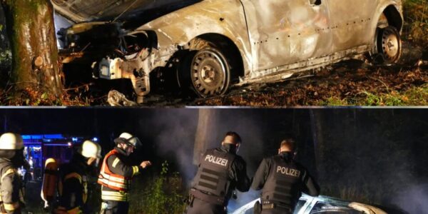 Opel brennt nach Unfall aus: Insassin randaliert bei Transport ins Krankenhaus