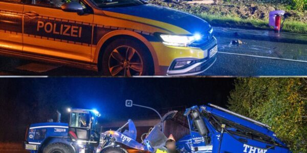 Schwerer Unfall auf Einsatzfahrt: THW-Laster überschlägt sich