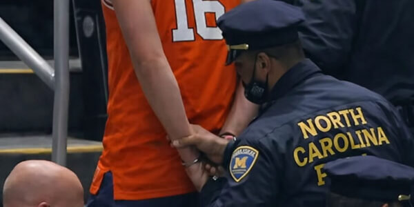 PRE-GAME CHAOS: CLEMSON FAN HANDCUFFED AFTER RUSHING COURT DURING TAR HEEL WARMUPS