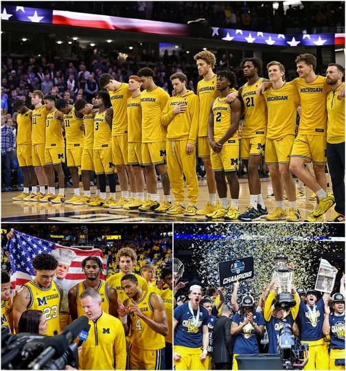 As the crowd roared in celebration of the narrow three-point win, Michigan didn’t immediately run for the locker room to pop champagne or start their media tours. Instead, the players gathered at center court. One by one. United. Standing where just moments ago they had fought for every inch of hardwood, they gathered around a single microphone, paused — and then began to sing.