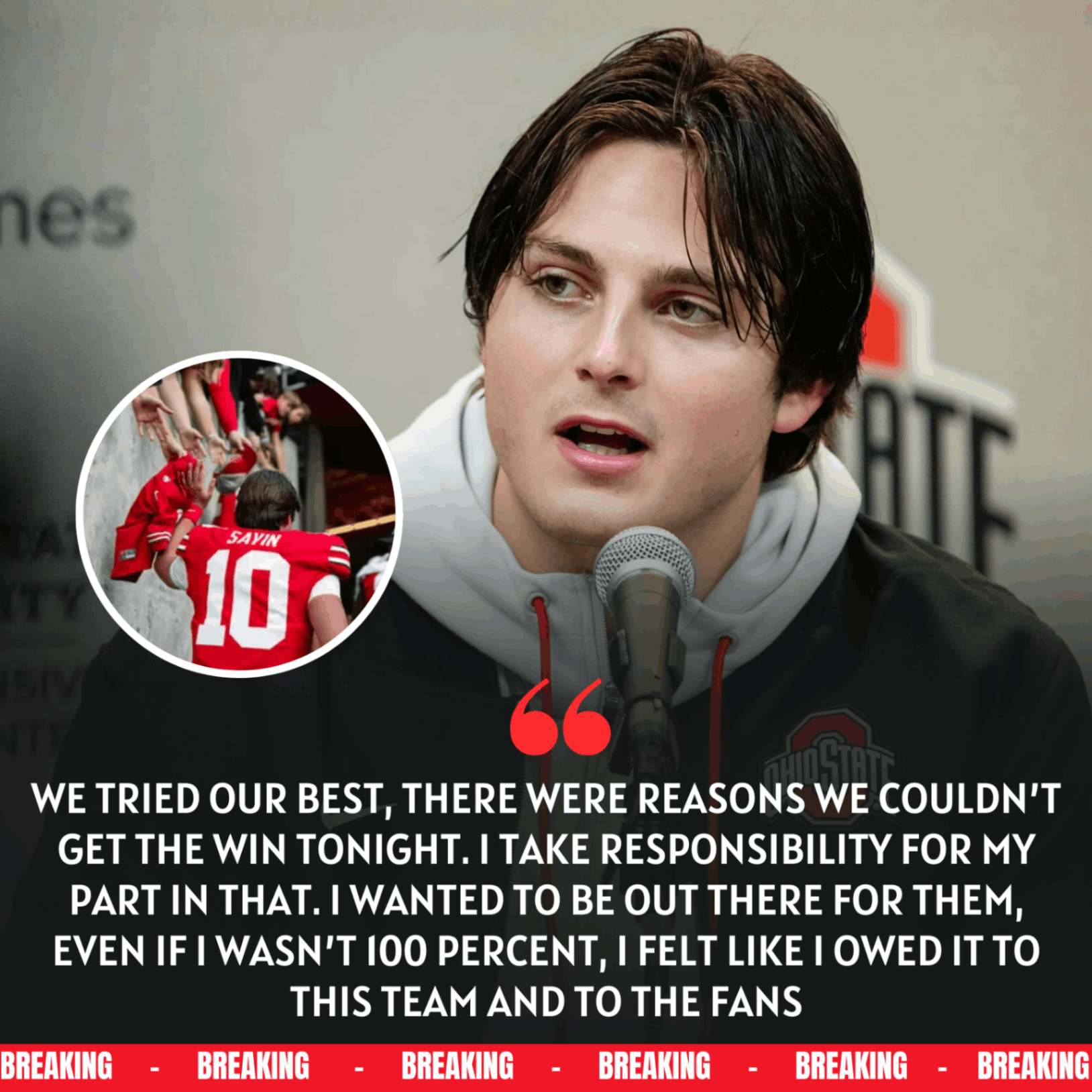 Late after the loss, Julian Sayin finally stepped forward. There were no excuses. No deflection. No attempt to soften the result. Instead, he delivered a message defined by accountability, vulnerability, and an admission that is rarely shared publicly by elite athletes: he played hurt, he accepted responsibility, and he believed he owed it to his teammates and the fans to be on the field—even when he wasn’t at full strength.