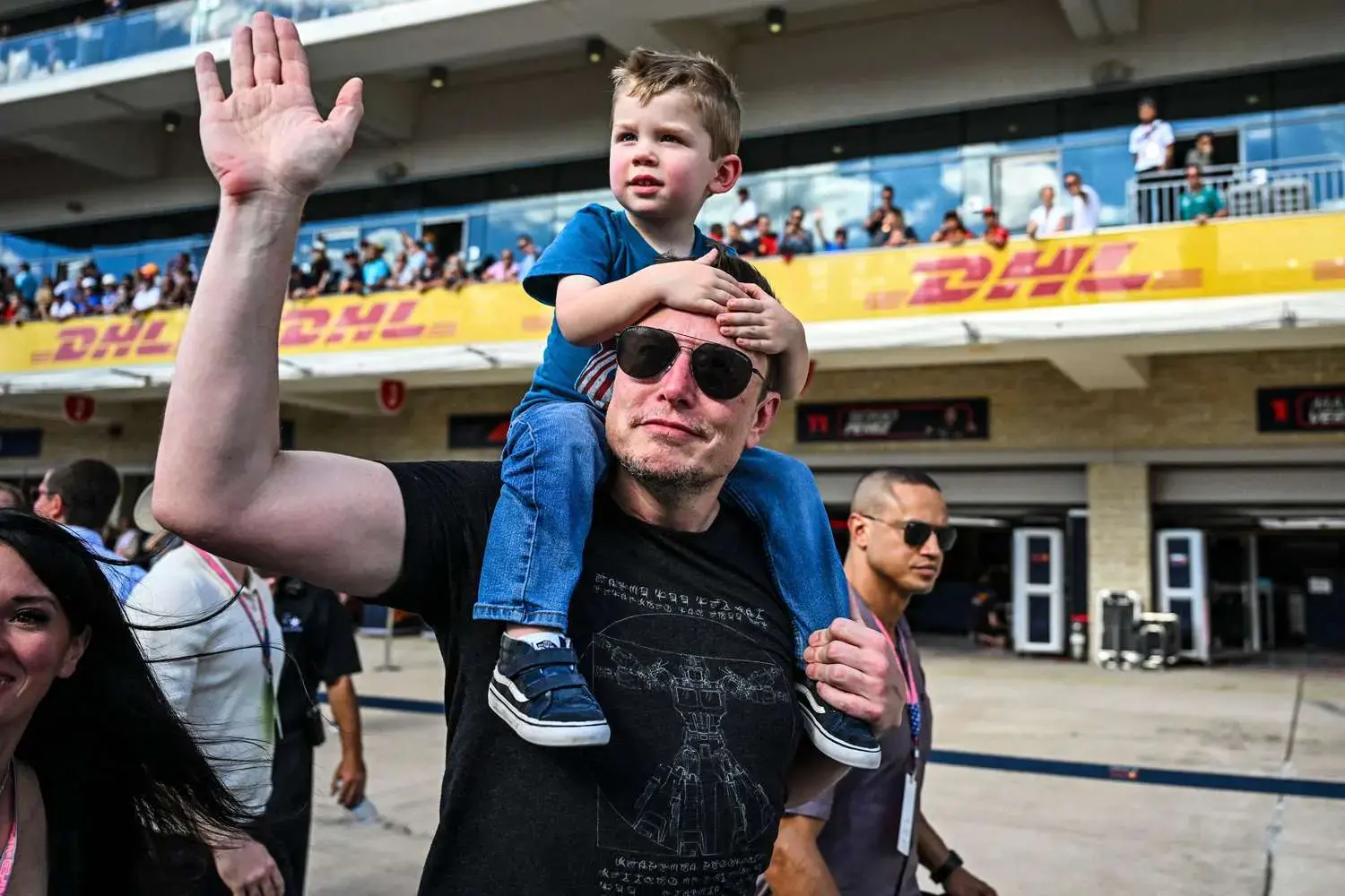 Videos and photos captured father and son together wearing matching protective headsets, with X playfully reaching up during the race weekend as Musk watched on.