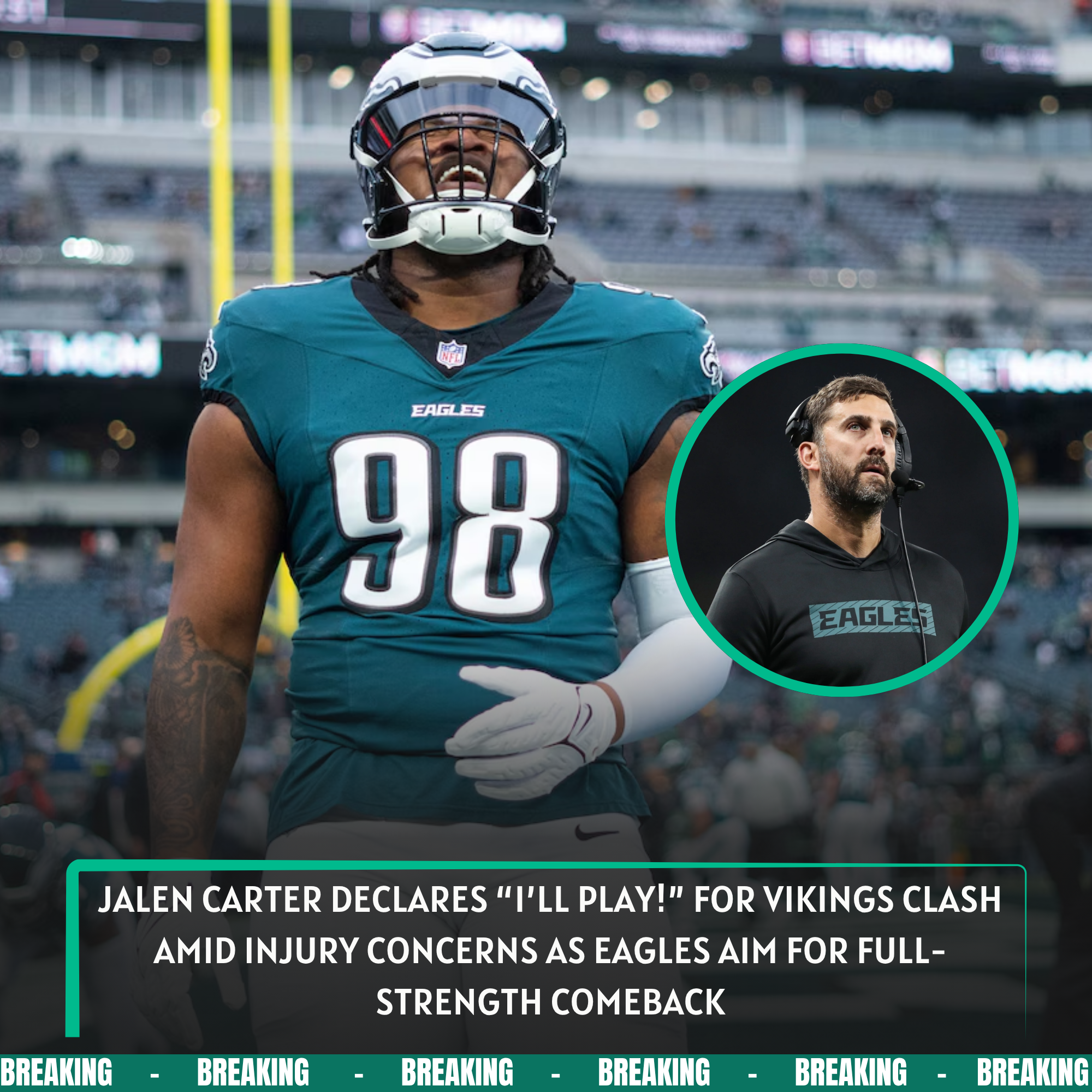 BREAKING NEWS: Jalen Carter declares “I’ll play!” for Vikings clash amid injury concerns as Eagles aim for full-strength comeback
