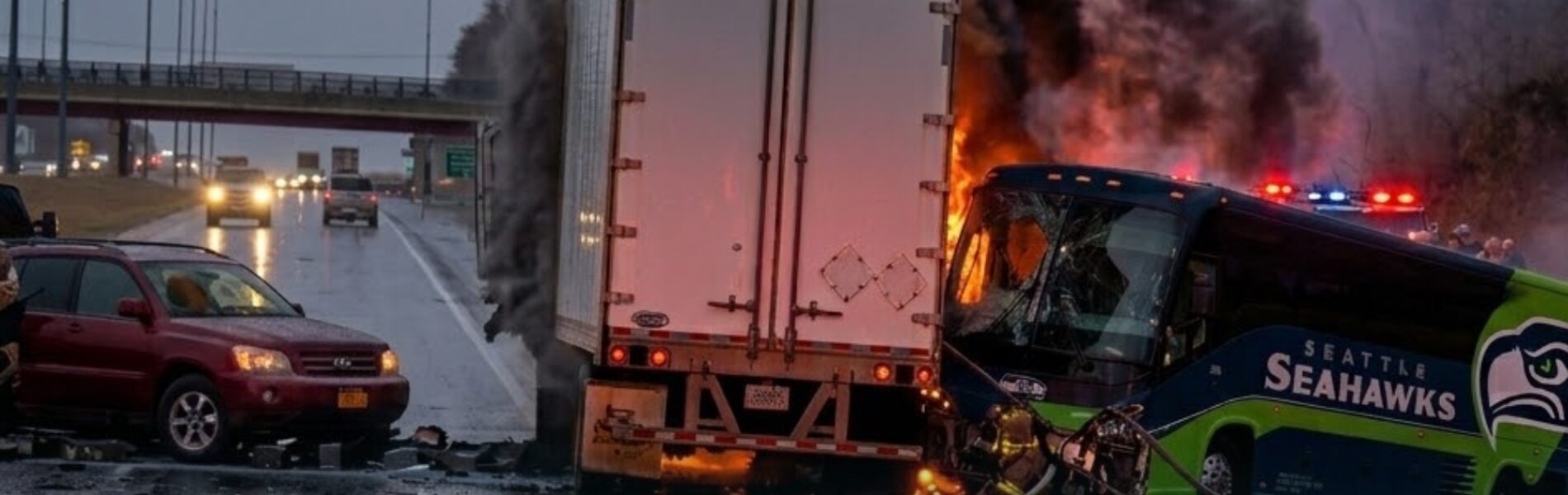 BREAKING NEWS: Seahawks Team Bus Involved in Severe Highway Crash on Way to Training Camp – NFL in Shock as Emergency Response Unfolds
