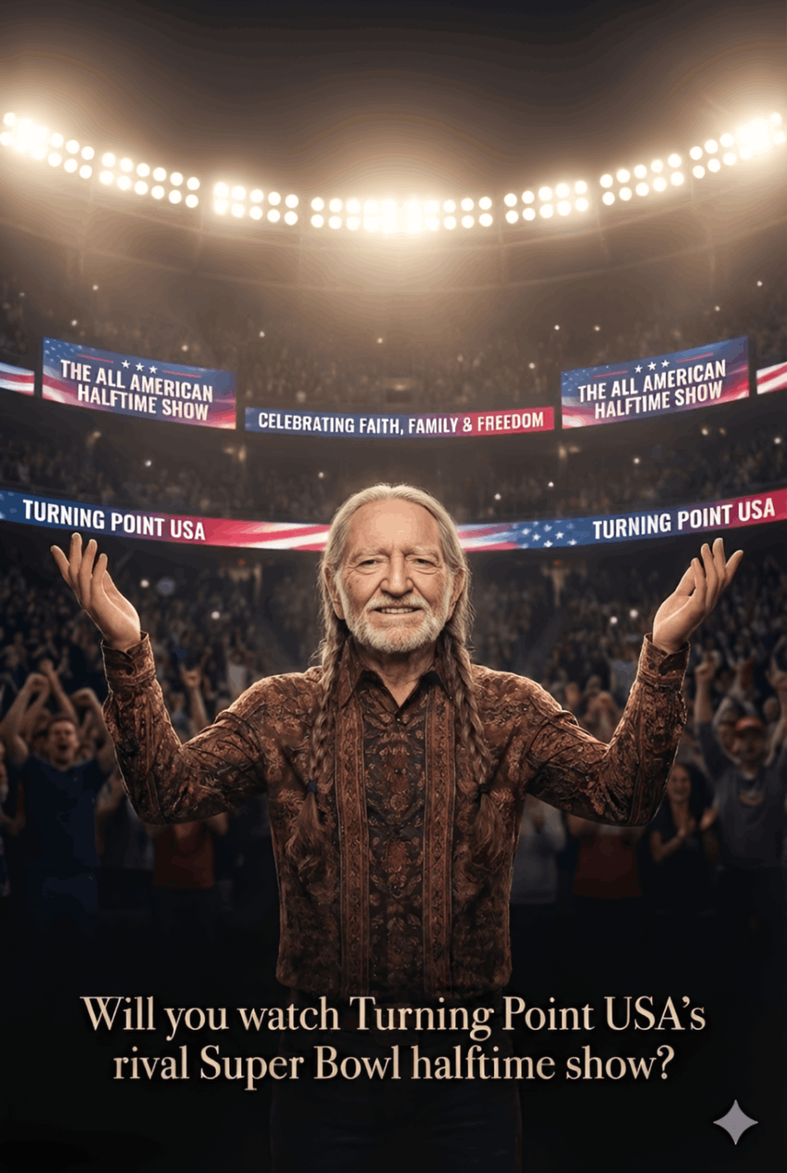 Whether viewers tune in out of curiosity, belief, or love for Willie Nelson’s unmistakable voice, one thing is certain: this halftime show will be talked about long after the final whistle.