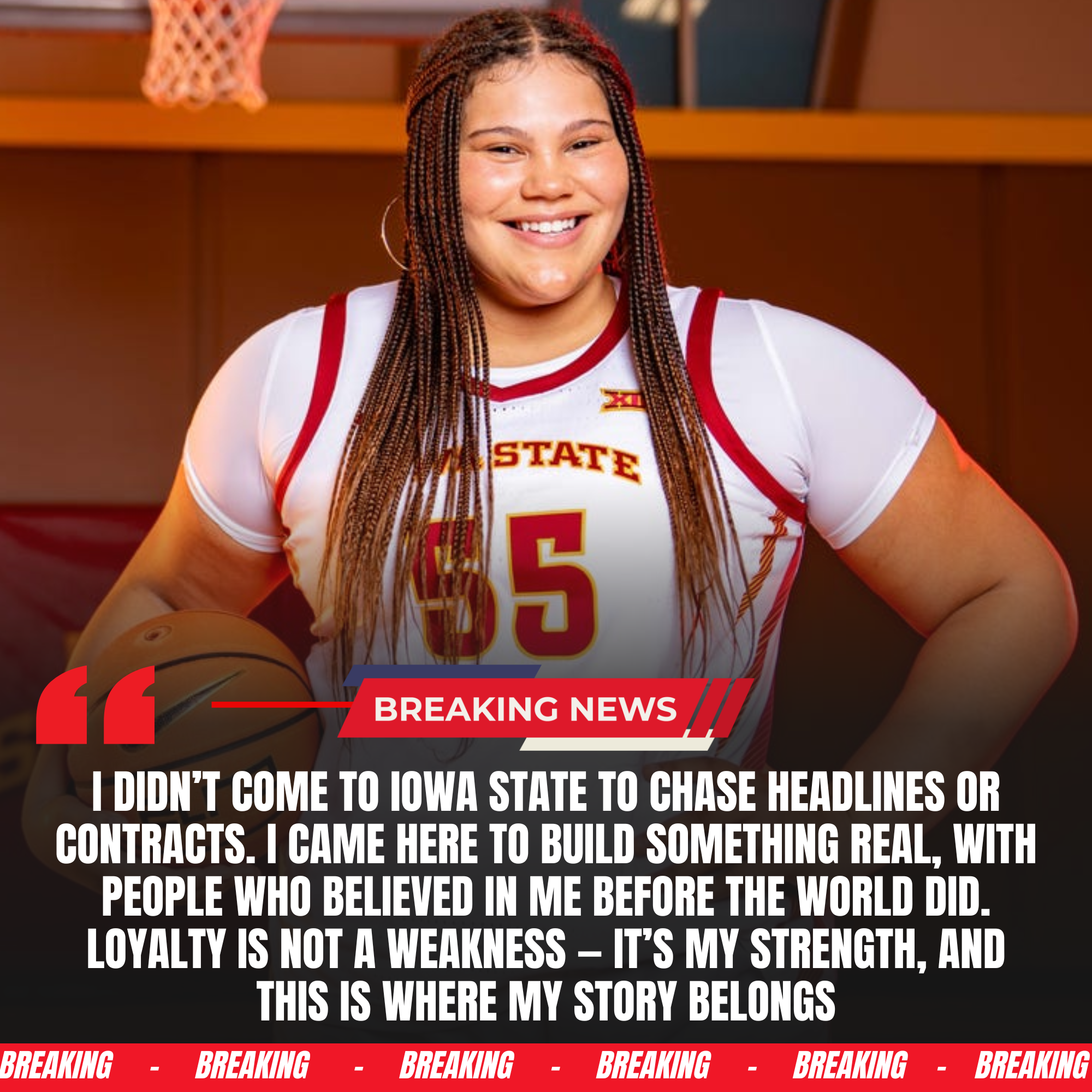 Yet behind closed doors, Crooks hesitated. Those close to her say the decision weighed heavily, not because of doubt in her talent, but because of what leaving would mean. Iowa State was not simply the place where she played basketball. It was where she grew, struggled, overcame, and became the player now commanding the nation’s attention. And that connection, in the end, proved stronger than any contract.