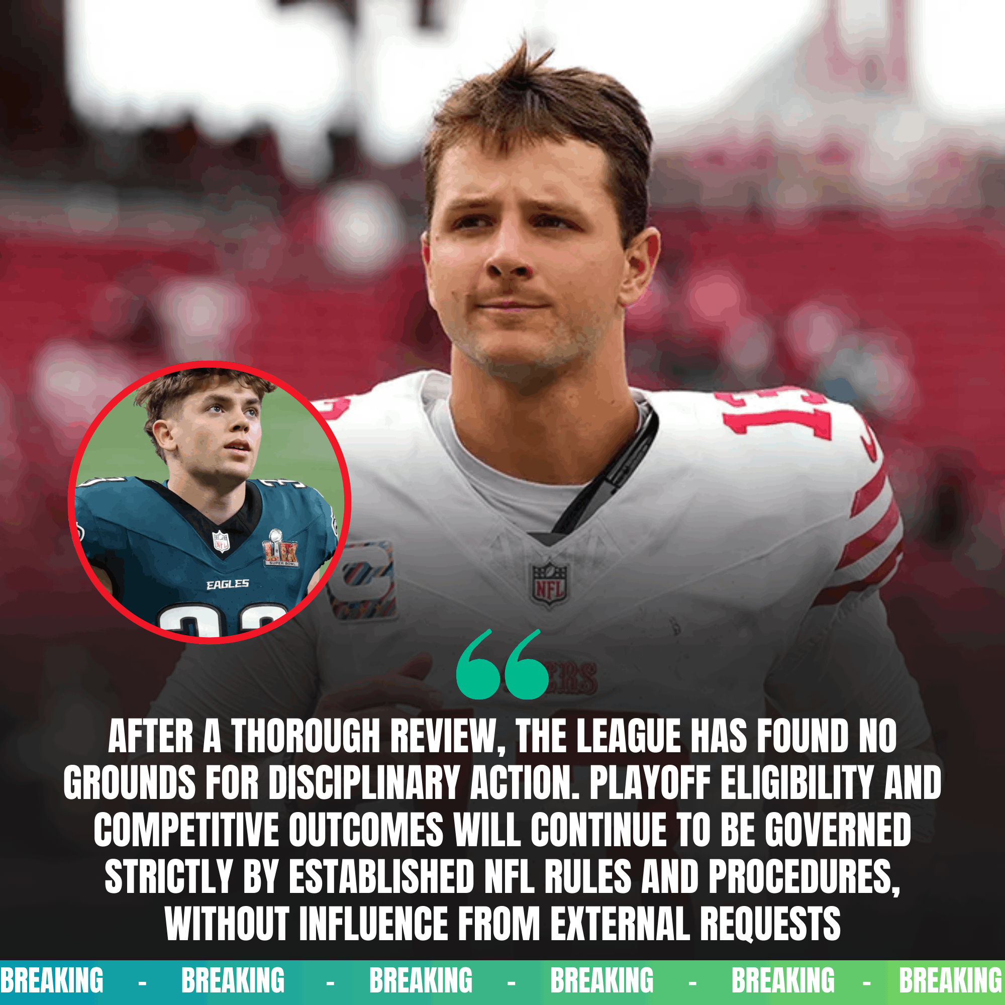 As kickoff approaches, one thing is certain: the Wild Card game will be played under an intense microscope. Every hit involving Purdy, every tackle by DeJean, and every officiating decision will be scrutinized for signs of bias or overcorrection.