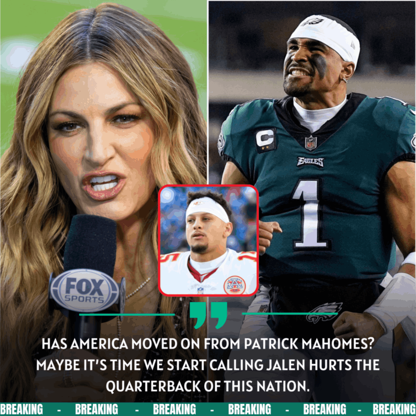 “Mahomes is still the king. But Hurts has that grind, that calm leadership that feels different. Maybe Erin’s not wrong.”