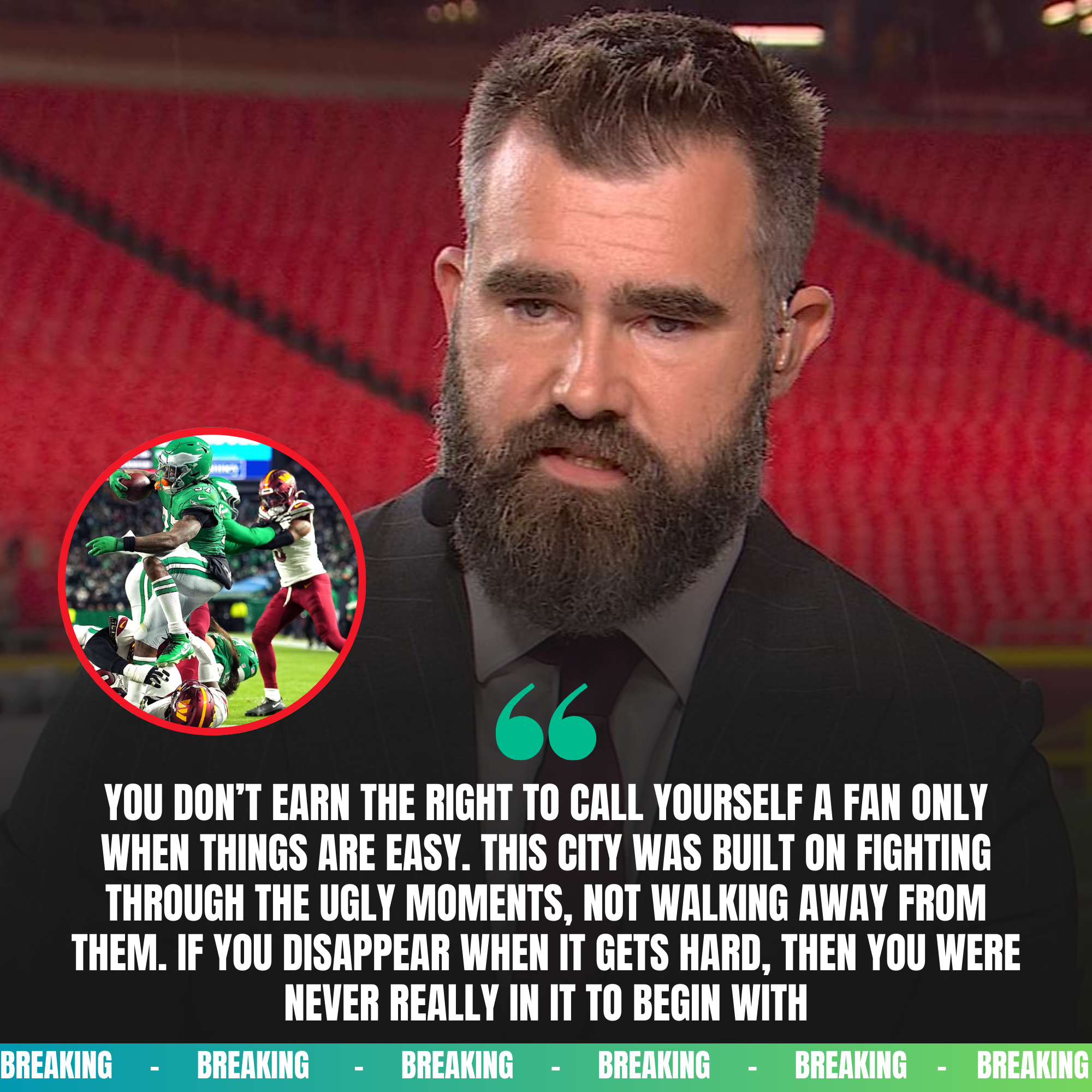 BREAKINGNEWS JASON KELCE DIDN’T BLAME THE LOSS — HE BLASTED THE FANS WHO VANISHED AFTER EAGLES FELL TO WASHINGTON