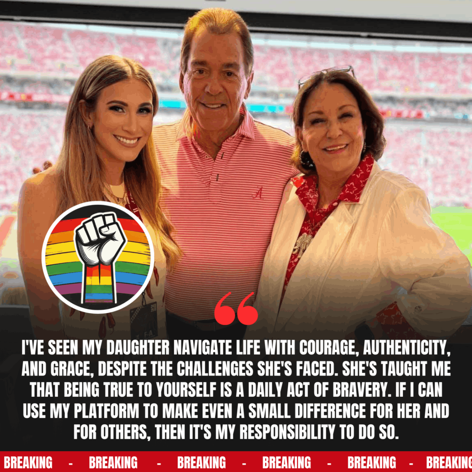 For Saban, this was never about slogans or symbols. It was about family. Sources close to the coach describe the decision to speak out as deeply personal, something he had wrestled with privately for years.