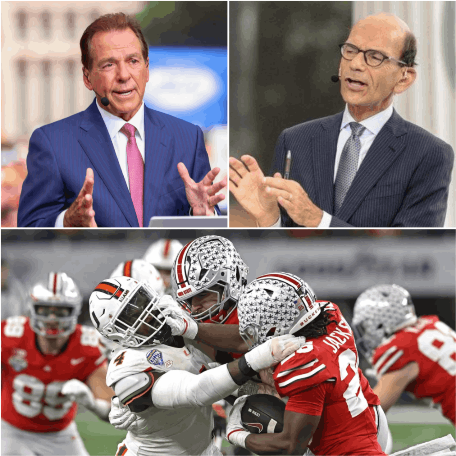 The morning after Ohio State’s 24–14 loss to the Miami Hurricanes, the national conversation followed a familiar script. Analysts dissected mistakes, debated rankings, and questioned whether the Buckeyes had once again fallen short in a defining moment. But no one expected the most powerful voice of the day to come not from a head coach defending his own team, but from Nick Saban — the most decorated figure in modern college football — stepping into a live ESPN studio and abruptly ending a narrative that had grown far louder than the game itself.