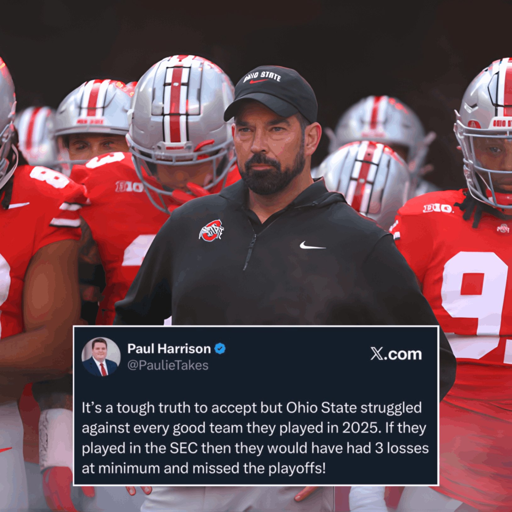 He cited playoff appearances, national championships, and interconference wins as evidence that the Big Ten, and Ohio State specifically, belong firmly among college football’s top tier.