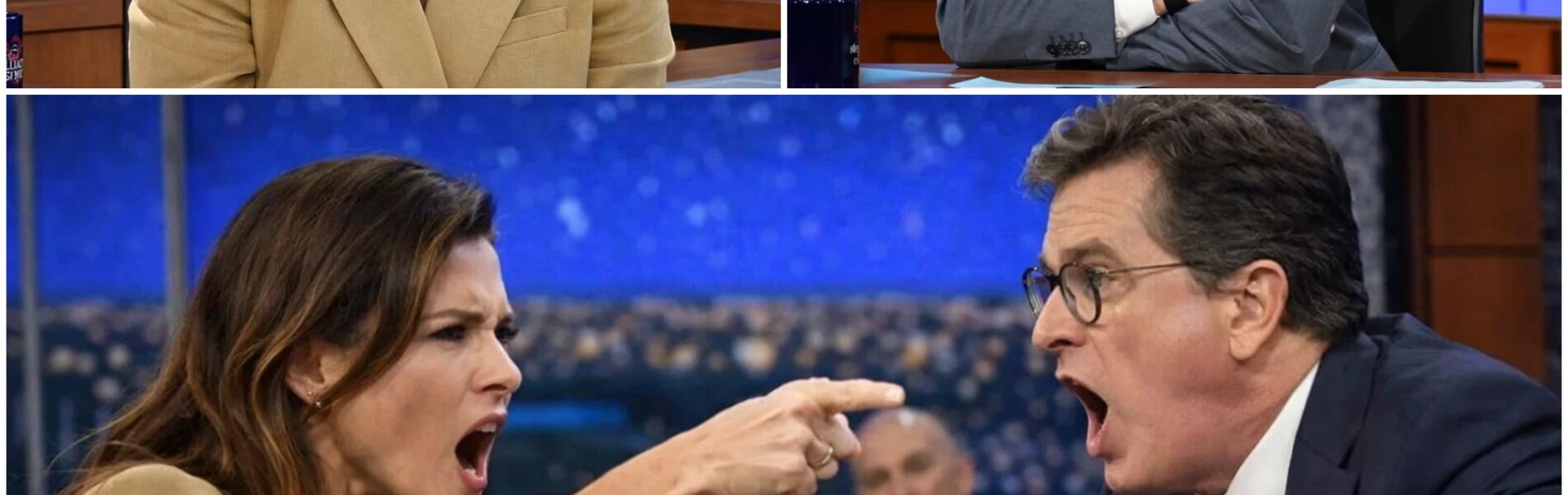 According to multiple witnesses inside the studio, tension peaked when Colbert abruptly slammed his hand on the desk and called for Patrick’s microphone to be cut — a rare and jarring command that instantly drained the room of energy.