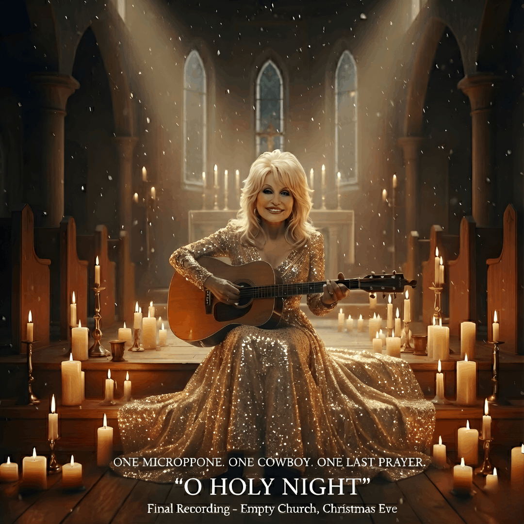 “DOLLY PARTON SINGS ‘O HOLY NIGHT’ ALONE IN AN EMPTY CHURCH — THE LAST RECORDING SHE’LL EVER MAKE: One microphone. One old guitar. One country saint pouring decades of living into the holiest Christmas song ever written.