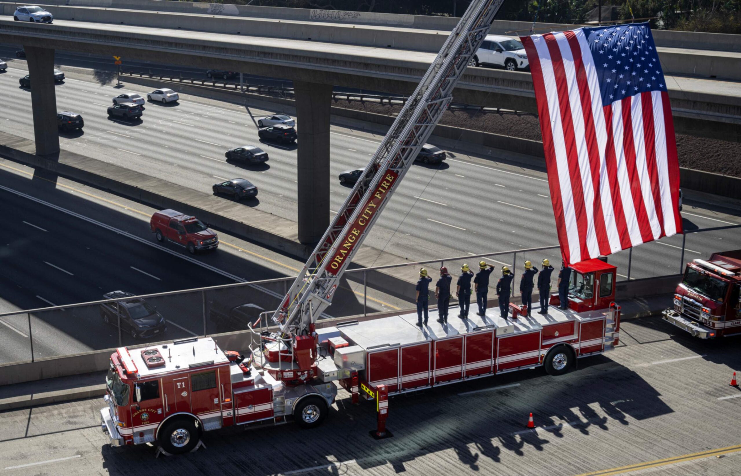 Voices raised against sirens and chaos.