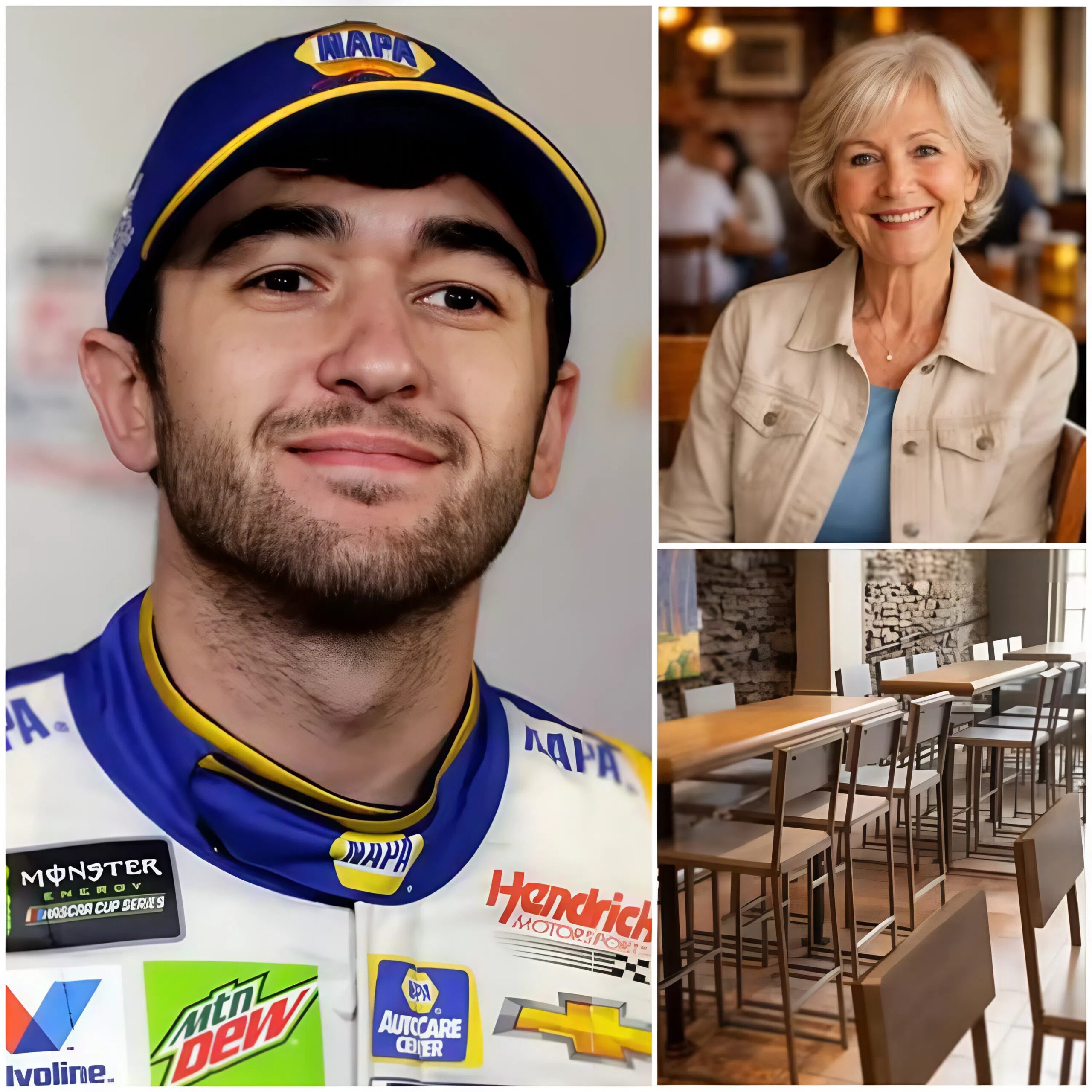 According to sources close to the driver, this diner is the very establishment where, during his grueling developmental years racing Late Models on the short track circuit, a tired and hungry Chase Elliott sat on credit, eating meals he couldn’t afford after long nights in the garage, fueled only by the kindness of a woman named Elena.