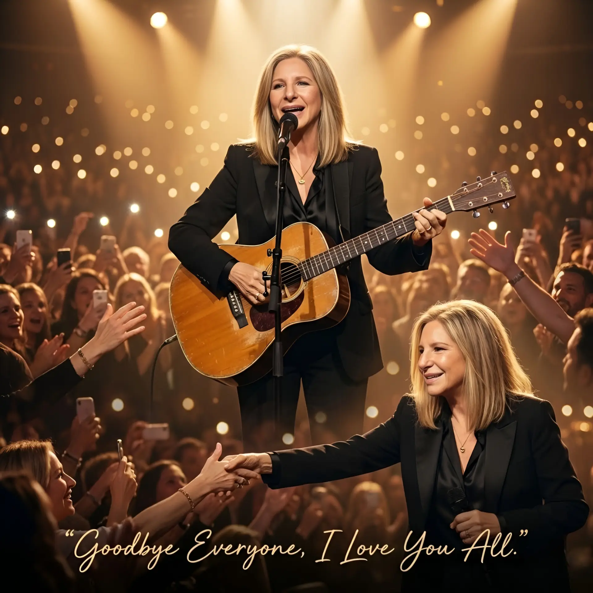 “Goodbye everyone, I love you all.” — The Barbra Streisand moment that broke Broadway in two: Under the warm stage lights, with her hand raised and her voice nearly fading into silence, a musical legend turned her final words into a prayer for the people who grew up with her songs.