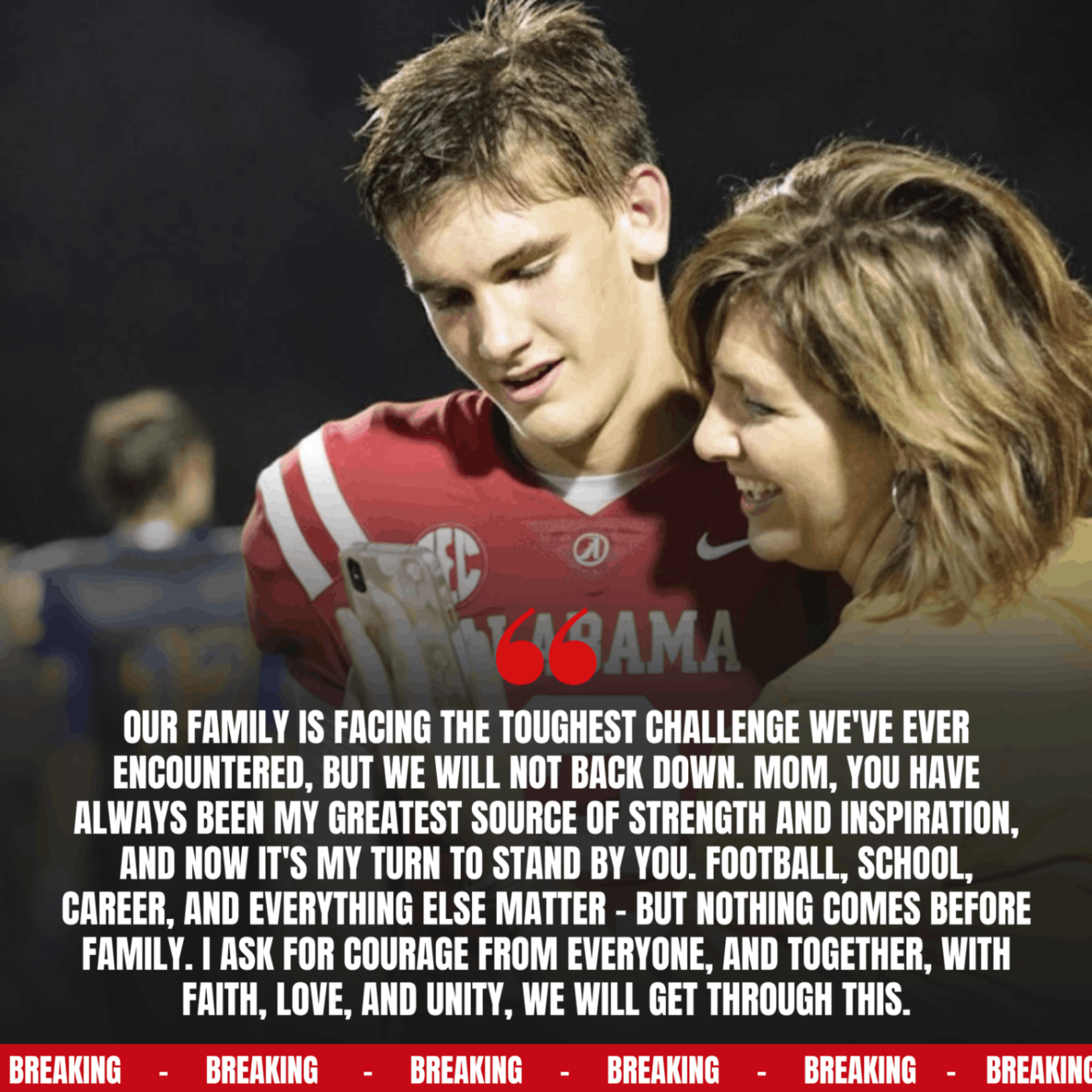 The college football world is built on spectacle, competition, and the relentless pursuit of greatness. Saturdays are defined by noise, color, and emotion. But every so often, the game is forced to step aside. On a quiet evening under dimmed lights, Alabama quarterback TY SIMPSON reminded everyone that behind the helmet is a son, a family, and a human story far bigger than football.