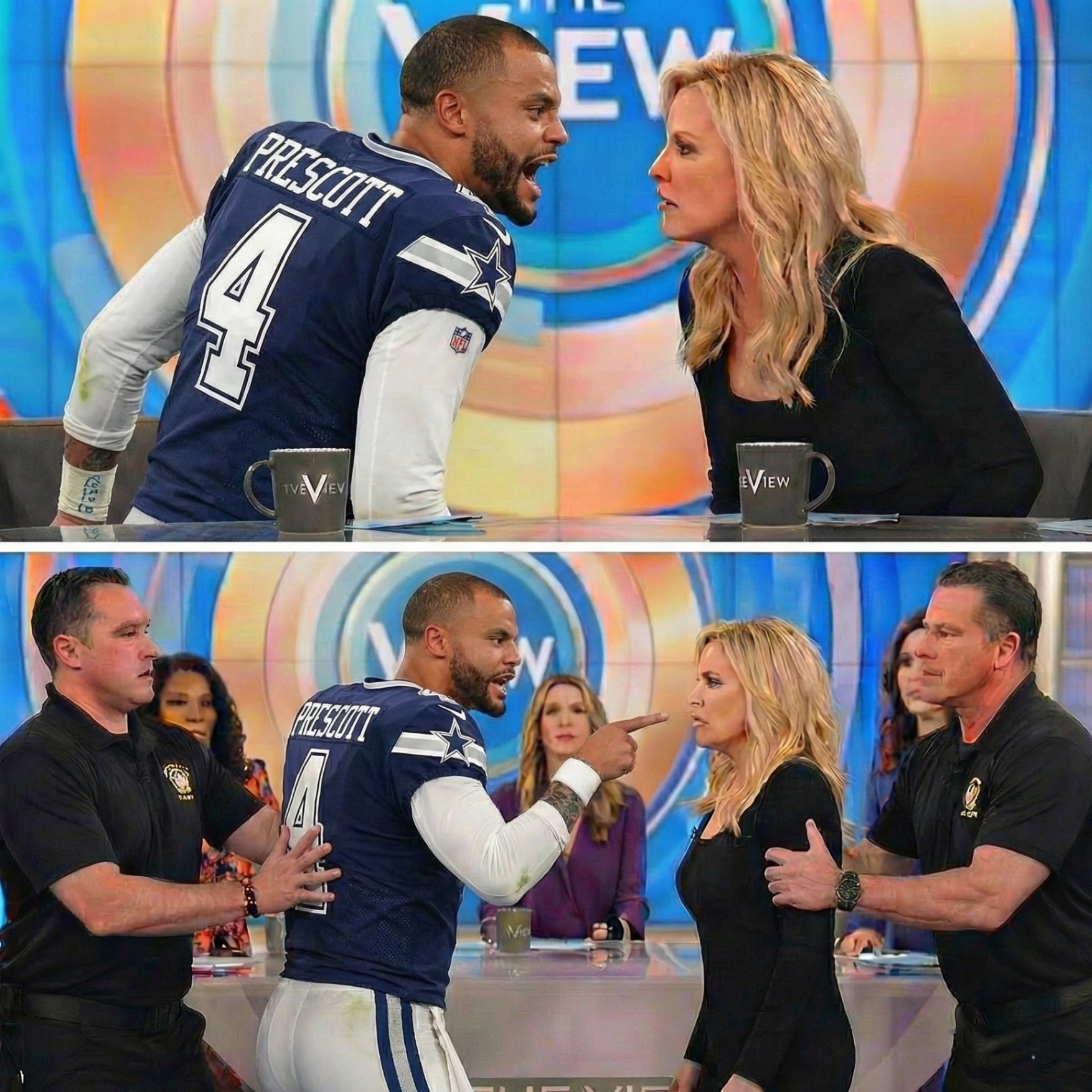 At first, the conversation stayed safe — football, leadership, public responsibility. But as the questions grew sharper and interruptions more frequent, the tone shifted. Joy Behar pressed harder, reframed Prescott’s words, and questioned his credibility.