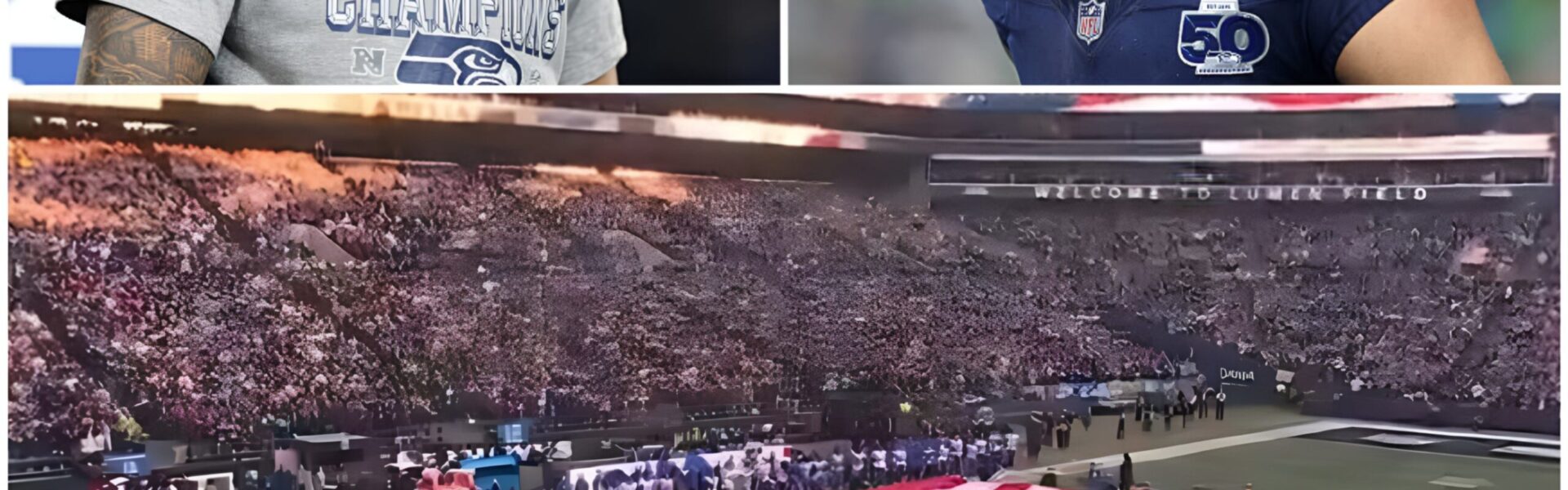 He walked slowly to the middle of the field, directly onto the Seahawks’ logo at midfield. As if sensing the gravity of the moment, he took the microphone in his hand, his face expressionless but serene. He didn’t need to say a word to capture the attention of the entire stadium — all eyes were already on him.