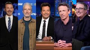 streaming age. Yet the solidarity demonstrated by Fallon, Kimmel, Meyers, Oliver,