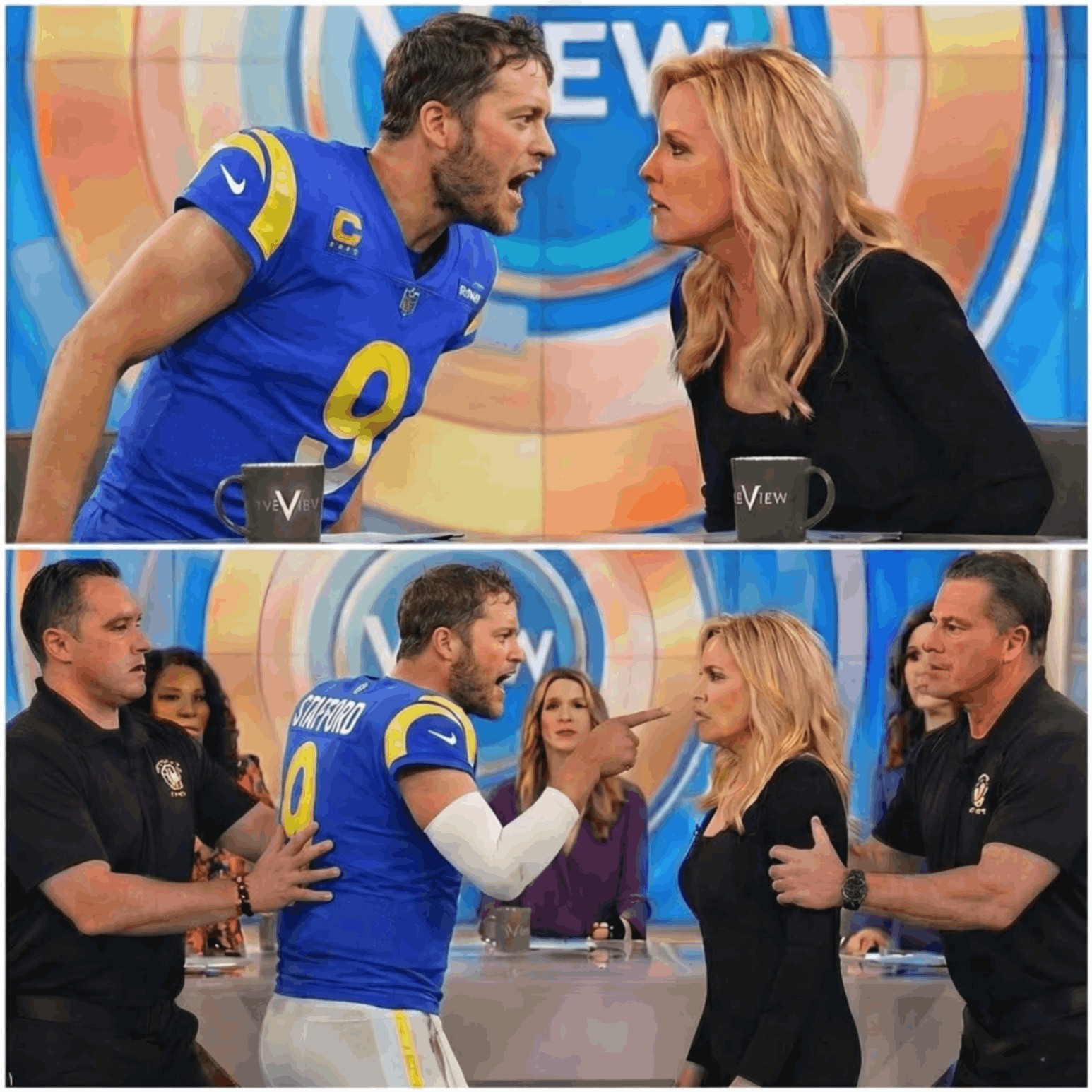 The fictionalized set of The View was packed, the audience leaning forward as the conversation edged away from football and into something more volatile. The panel pressed Stafford about pressure, criticism, and what accountability should look like for high-profile athletes. At first, his answers were measured and professional.