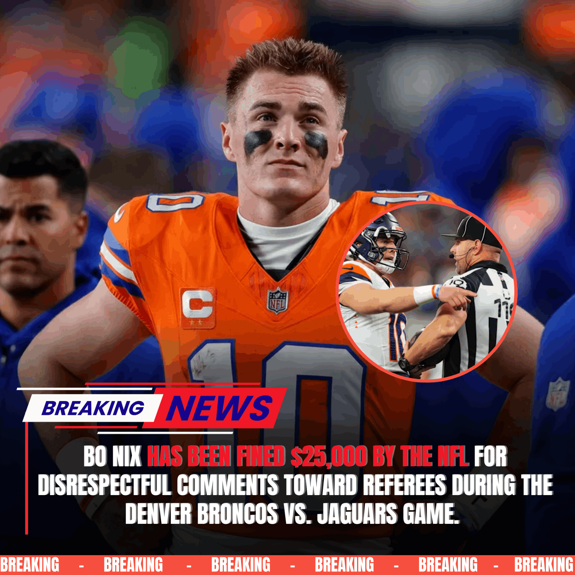 The NFL has once again found itself at the center of controversy, not because of a play on the field, but because of what was said after the final whistle. DENVER BRONCOS quarterback BO NIX has been fined $25,000 by the league after making comments deemed “disrespectful toward game officials” following Denver’s painful loss to the JACKSONVILLE JAGUARS. The decision has ignited intense discussion across the league about player expression, officiating accountability, and the emotional toll of high-stakes defeats.