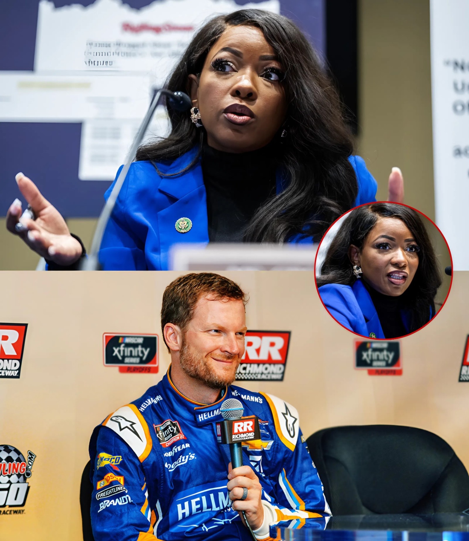 What began as friendly banter allegedly veered into ridicule when Jasmine Crockett shifted topics abruptly, questioned Earnhardt’s credibility, and mocked him live, calling him “a washed-up racer playing patriot,” a phrase now looping endlessly across social platforms.