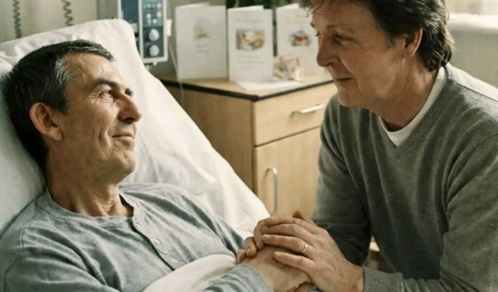 A short, unedited video — believed to have surfaced online by mistake — is quietly circulating among Beatles followers, stirring emotion not through what it shows, but through what it withholds. The clip is said to capture Paul McCartney standing alone in a hospital corridor, moments before being allowed to enter the room of George Harrison during the final days of George’s life. It ends abruptly. No greeting. No embrace. No farewell. Just silence — and the weight of history suspended in a hallway.