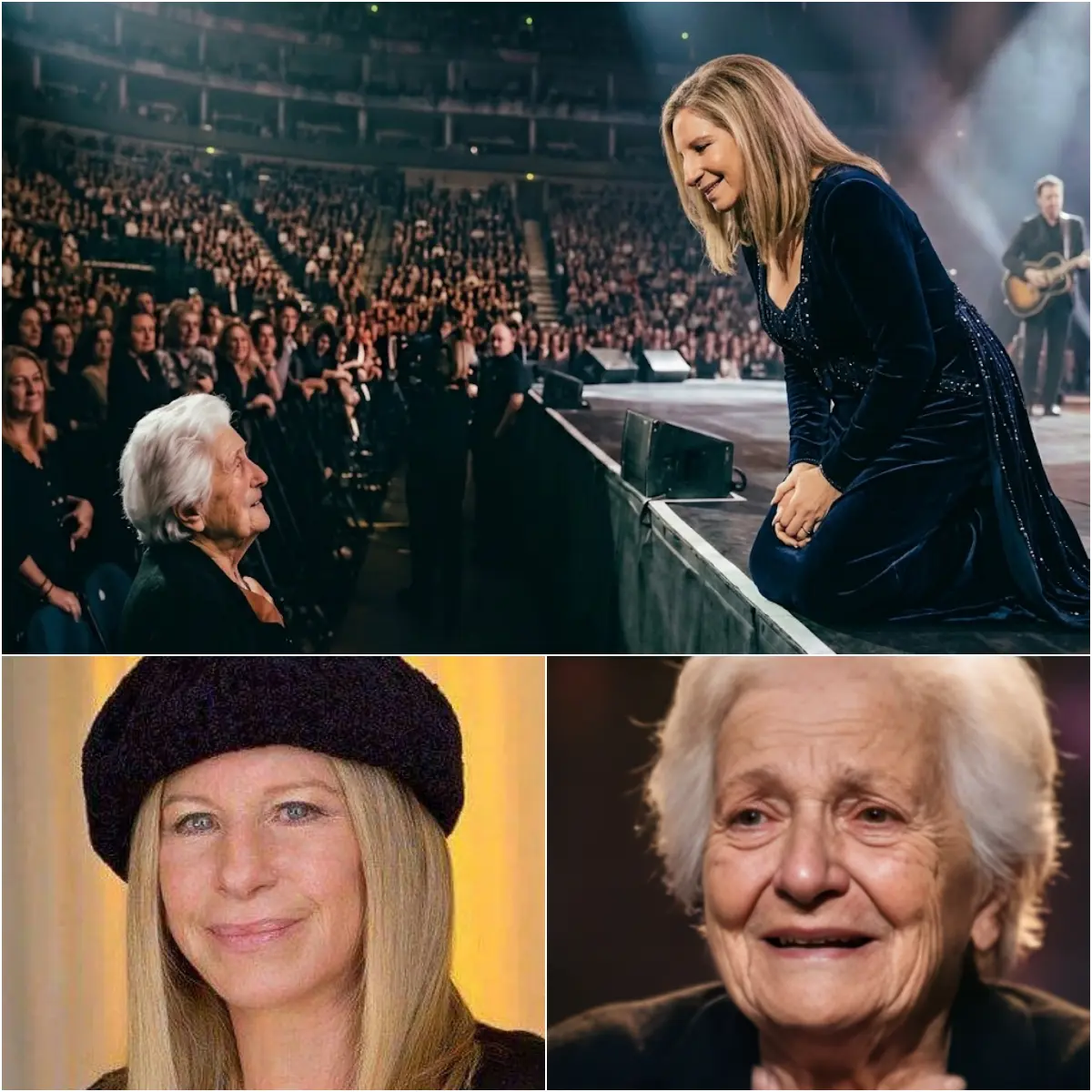 SHE DIDN’T SING FOR THE CROWD — SHE SANG FOR ONE GRANDMOTHER. Halfway through the show, Barbra Streisand noticed her. A small figure near the front. White hair. Hands folded tight, like she was holding onto something precious