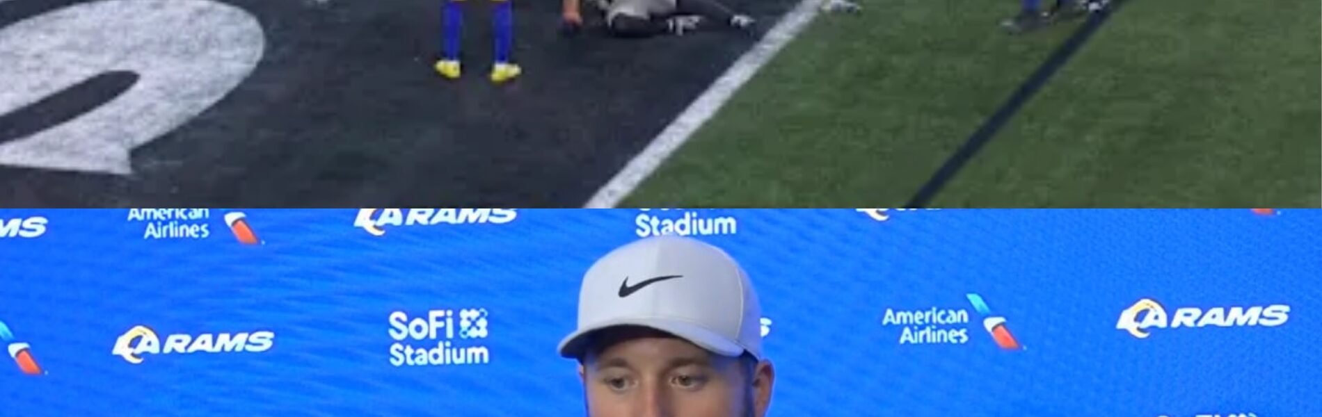 The noise inside Lumen Field was still echoing when MATTHEW STAFFORD stepped to the podium. The scoreboard glowed with the final line: SEATTLE SEAHAWKS 38, LOS ANGELES RAMS 37 (OT). Helmets were already off. Cameras were already rolling. Yet the most unforgettable moment of the night did not come from a touchdown, a tackle, or a celebration. It came from ten words.