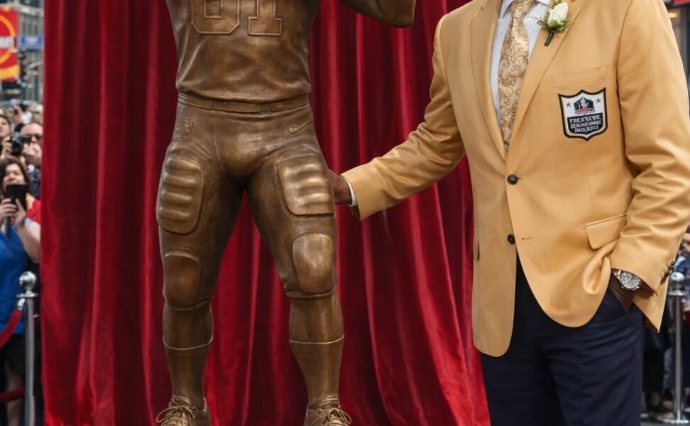 The sculptor had captured more than just physical detail. Every line, every angle of the bronze figure seemed to tell a story — of early mornings, relentless training, quiet determination, and moments of brilliance that lit up Sundays for years. You could almost feel the energy frozen within it, like the statue might step forward at any moment and run one more perfect route.