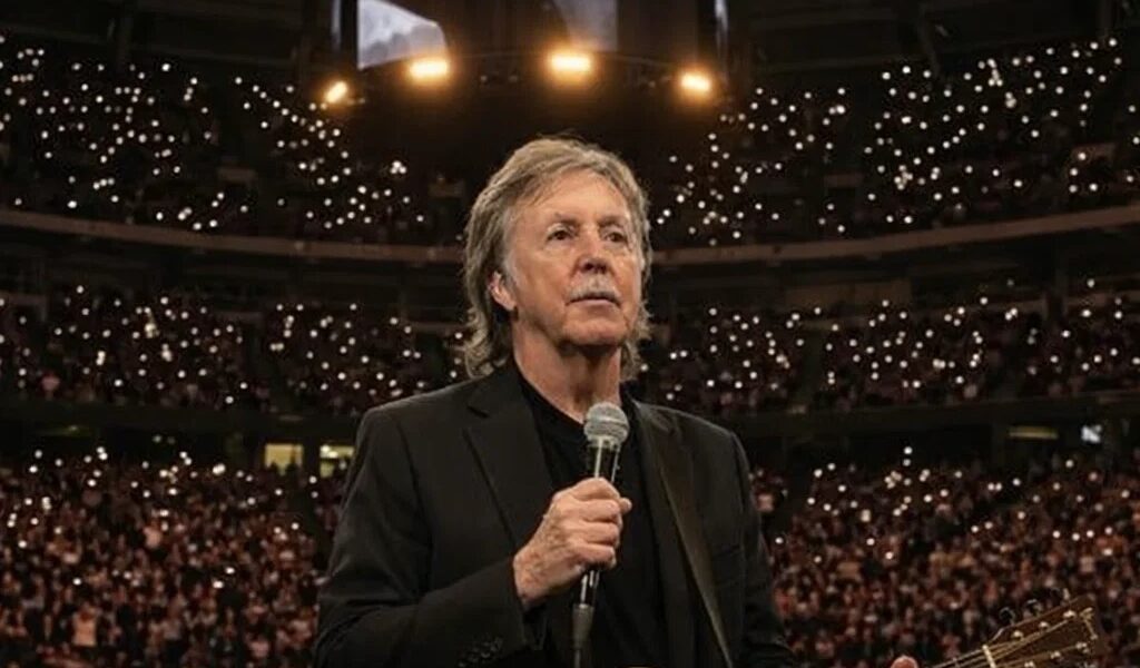 When McCartney began to play, the atmosphere shifted from silence to something deeper, almost spiritual. The soft acoustic chords carried across the stadium, echoing through a crowd that remained almost completely still. It was not merely a musical performance; it felt like a collective act of remembrance. In an era defined by spectacle and noise, the quiet intensity of the tribute stood out, reminding many of the power of restraint and authenticity.