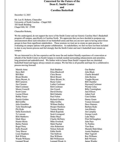 In an era where fans often feel powerless against administrative decisions and long-term institutional planning, an open letter to Chancellor Lee Roberts has proven that collective voices still carry weight. What began as a statement of concern has already made a tangible impact — slowing momentum around the proposed relocation of the Dean E. Smith Center and reopening conversations that many believed were already closed.