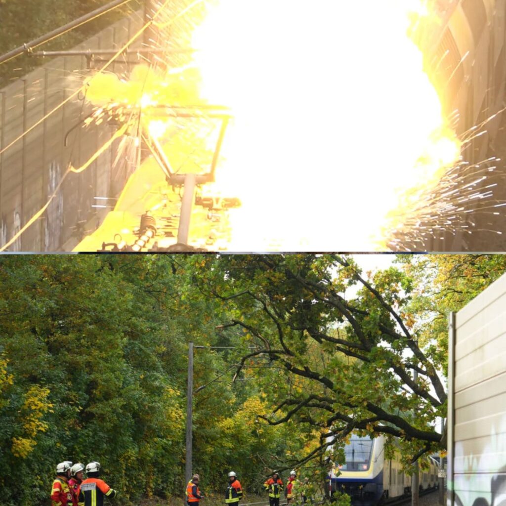 Wichtige Bahnstrecke gesperrt! Zug rast gegen brennenden Ast